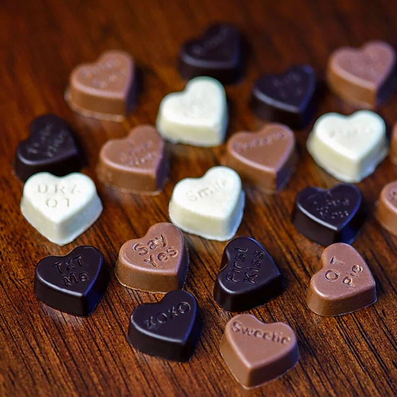 Want to trade sweet nothings with your partner, date, friend, or person you just met, but don't know where to start? Order a box of our conversation hearts for a little sweet and a little conversation delivered right to your table. Each order comes with one milk chocolate heart, one white chocolate heart, and Valentione's questions for you both to talk about and answer with each other.