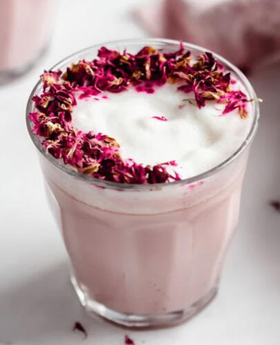 This pretty pink chai looks like it could come from the land of the fae, but we're not telling. Masala chai mixed with raspberry syrup, honey, and milk, topped with a sprinkling of rose petals. Available hot or iced!