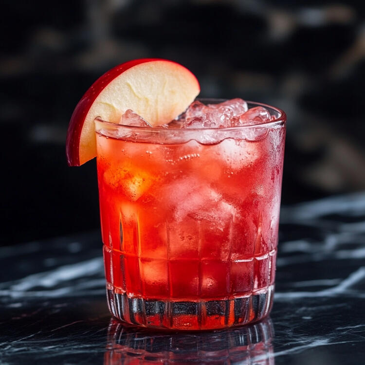 Bourbon, apple cider, and grenadine are shaken and served on the rocks with an apple slice for a sweet seasonal treat that definitely isn't poisonous...right?