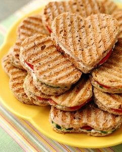Heart shaped pressed paninis served hot and toasty! Choice between four cheese, tomato mozzerella basil, or chicken and pepper jack cheese.