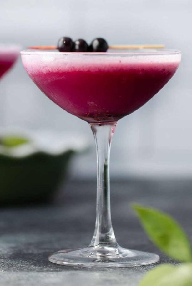 Vodka, blackcurrant liqueur, and lemon juice are shaken and served in an ice cold cocktail glass guaranteed to chill your bones